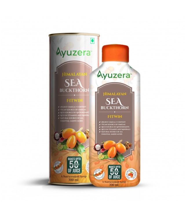 Ayuzera Sea Buckthorn Fit Win is a natural weight management supplement enriched with Sea Buckthorn, Garcinia Cambogia, and Ayurvedic herbs. It helps boost metabolism, burn fat, and regulate hunger while preserving essential nutrients for a healthy and sustainable weight loss journey